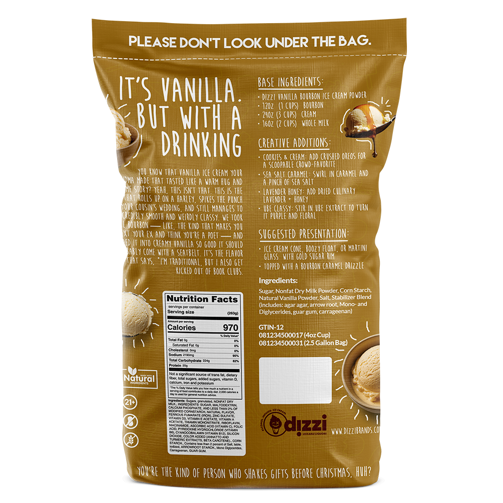 Vanilla ice cream has always been the classic comfort flavor—but we don’t do ordinary at Dizzi. This is vanilla with a bold twist, crafted for the nights when you want dessert that doubles as a toast. Rich, velvety vanilla blends seamlessly with smooth bourbon to create a flavor that feels both familiar and unexpected—like catching up with an old friend who suddenly became the life of the party. It’s sweet, creamy, and just the right amount of boozy, making it the ultimate grown-up indulgence. Perfect for after-dinner drinks, late-night laughs, or anytime you want to impress your guests without lifting more than a whisk. Vanilla Bourbon doesn’t just taste good—it feels like an experience.